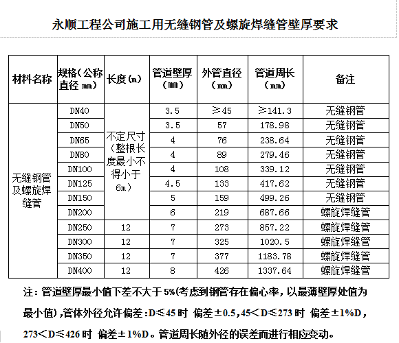 ①無縫鋼管:采取20#鋼,標(biāo)準(zhǔn)為GB/T17395-2008《無縫鋼管尺寸、外形、重量及運(yùn)行偏差》、GB/8163《輸送流體用無縫鋼管》;螺旋鋼管:材質(zhì)為Q235B,標(biāo)準(zhǔn)為GB/T 9711-2017。無縫鋼管及螺旋鋼管壁厚最小值下差不大于5%,(考慮到鋼管存在偏心率,以最薄壁厚處值為最小值)且不得低于以下企業(yè)標(biāo)準(zhǔn):上海寶鋼集團(tuán)公司、首鋼集團(tuán)、鞍山鋼鐵集團(tuán)公司、武漢鋼鐵(集團(tuán))公司、萊蕪鋼鐵集團(tuán)、濟(jì)南鋼鐵集團(tuán)總公司、攀枝花鋼鐵(集團(tuán))公司、唐山鋼鐵集團(tuán)有限責(zé)任公司、青島鋼鐵控股集團(tuán)有限責(zé)任公司、天津鋼管集團(tuán)有限公司。