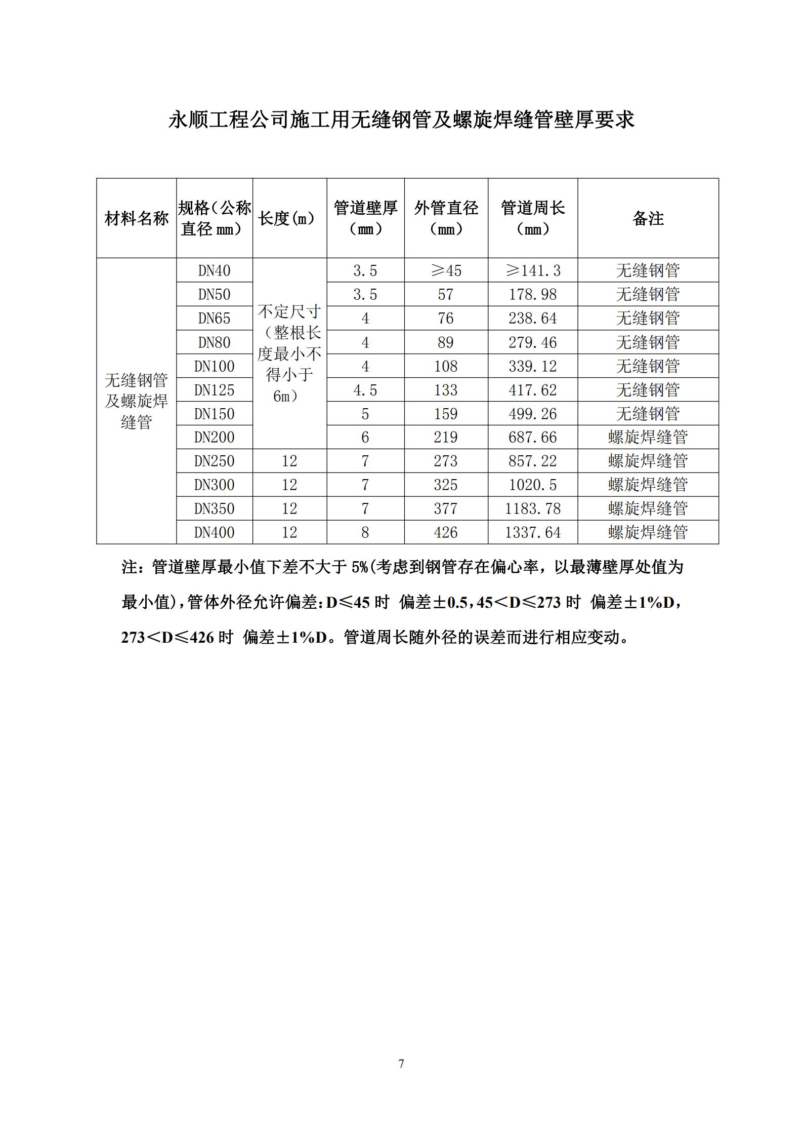 ①無縫鋼管:采取20#鋼,標(biāo)準(zhǔn)為GB/T17395-2008《無縫鋼管尺寸、外形、重量及運行偏差》、GB/8163《輸送流體用無縫鋼管》;螺旋鋼管:材質(zhì)為Q235B,標(biāo)準(zhǔn)為GB/T 9711-2017。無縫鋼管及螺旋鋼管壁厚最小值下差不大于5%,(考慮到鋼管存在偏心率,以最薄壁厚處值為最小值)且不得低于以下企業(yè)標(biāo)準(zhǔn):上海寶鋼集團公司、首鋼集團、鞍山鋼鐵集團公司、武漢鋼鐵(集團)公司、萊蕪鋼鐵集團、濟南鋼鐵集團總公司、攀枝花鋼鐵(集團)公司、唐山鋼鐵集團有限責(zé)任公司、青島鋼鐵控股集團有限責(zé)任公司、天津鋼管集團有限公司。